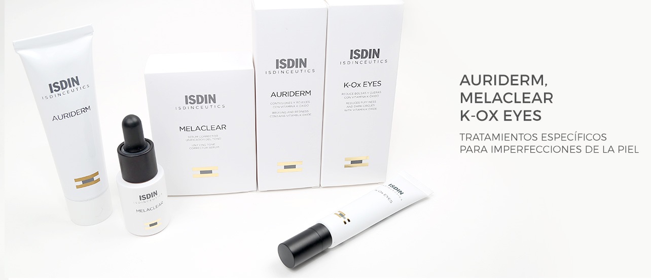 - Auriderm: Es un tratamiento específico para combatir las imperfecciones de la piel. Su acción es anti-rojeces y anti-hematomas, adecuada para después de tratamientos dermatológicos o estéticos como inyecciones de relleno (ácido hialurónico), mesoterapia, láser o intervenciones quirúrgicas.