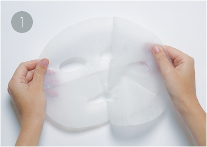 1. Retira la máscara de la funda y despliégala. Verás que tiene una película protectora por cada lado; despega una de ellas.
