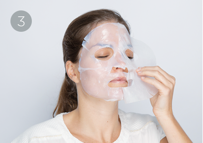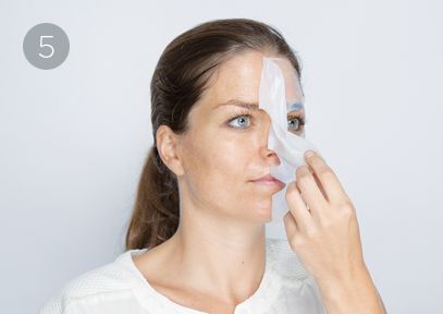 4. Adapta la máscara a tus contornos faciales. Relájate y déjala actuar 20 minutos.