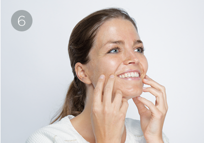6. Reparte el serum restante con un suave masaje con las yemas de los dedos hasta que se absorba completamente.