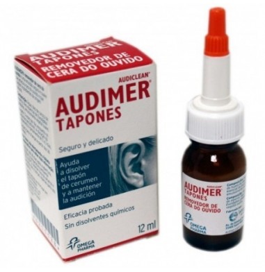 Audimer reblandece y ayuda a disolver el tapón de cerumen del oído que provoca dificultades de audición, dolor, zumbidos, sensación de taponamiento, sordera eventual después de nadar o ducharse.